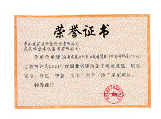 2021年度湖北省建設(shè)施工現(xiàn)場黨建、質(zhì)量、安全、綠色、智慧、文明“六個(gè)工地”示范項(xiàng)目