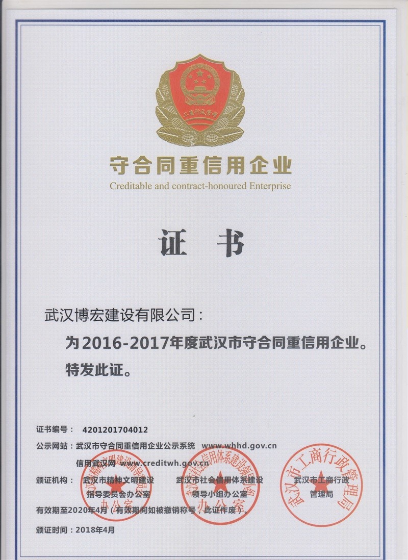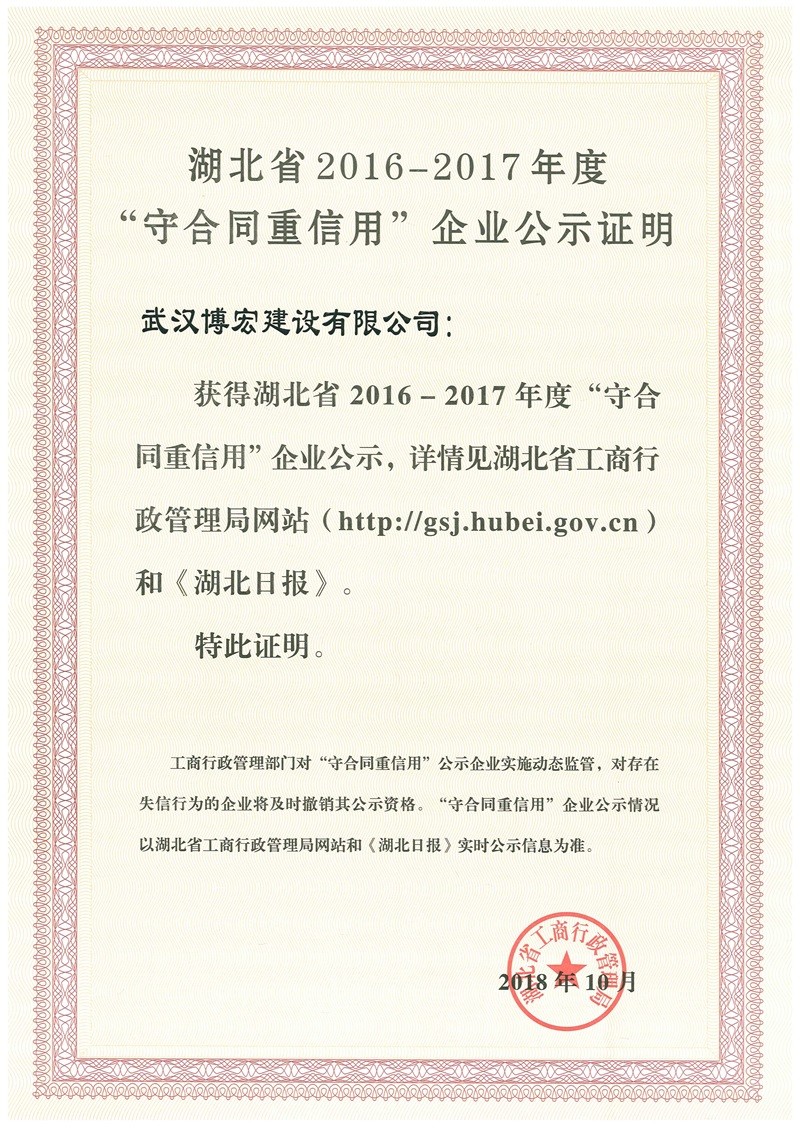 湖北省2016-2017年度守合同重信用