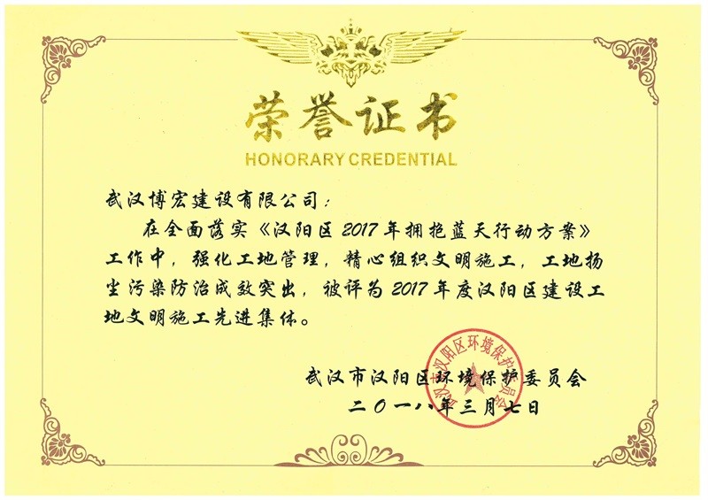 2017年度漢陽(yáng)區(qū)建設(shè)工地文明施工先進(jìn)集體