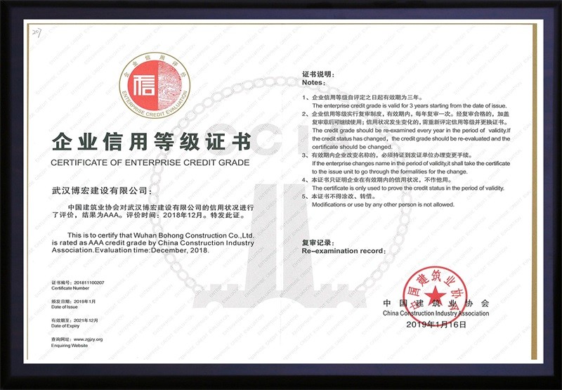中國(guó)建筑協(xié)會(huì)3A信用等級(jí)證書(2019年1月)