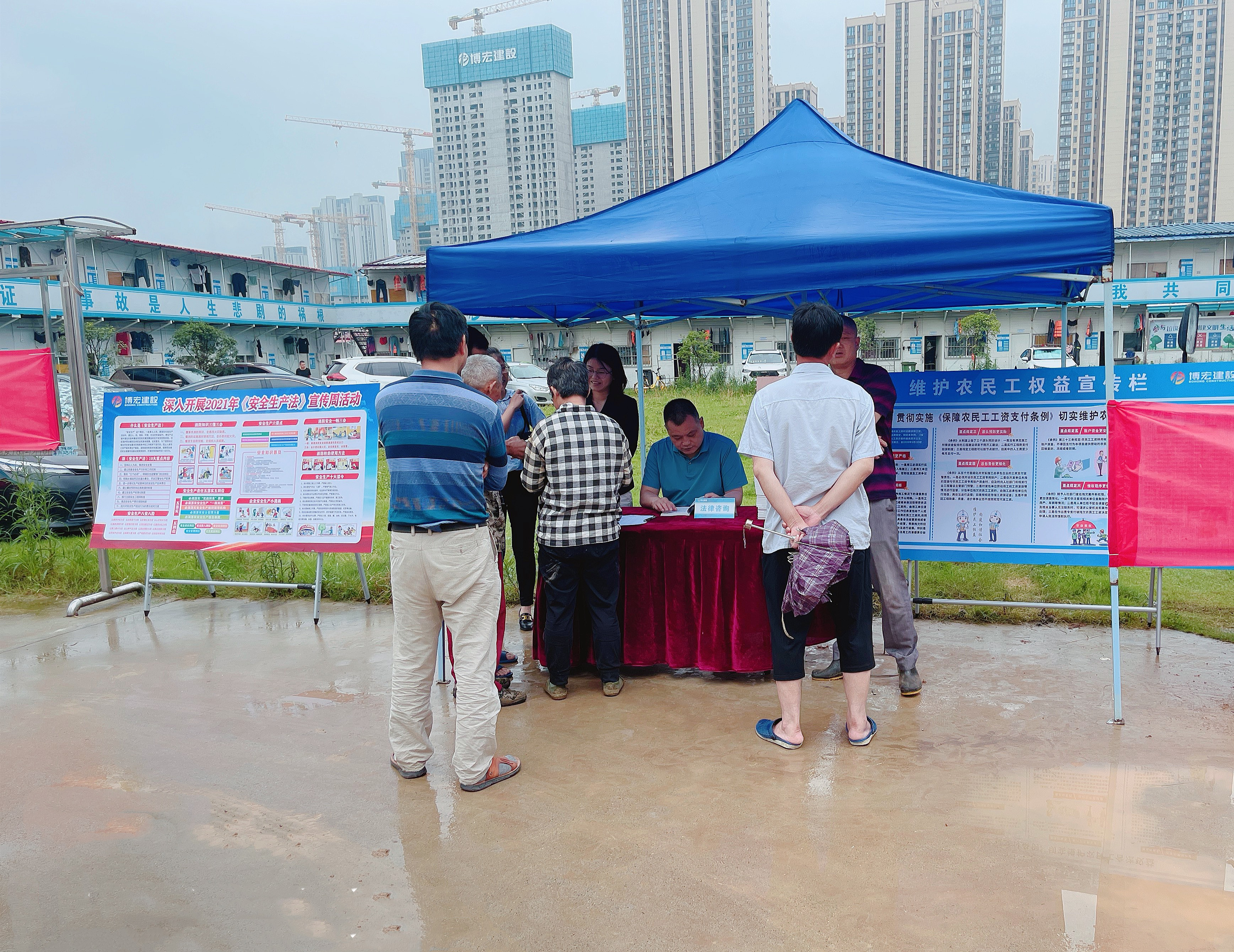 6月19日下午4點(diǎn),“送法進(jìn)工地”普法宣傳活動(dòng)在漢陽(yáng)市政大廈項(xiàng)目部舉辦。活動(dòng)現(xiàn)場(chǎng)通過(guò)懸掛橫幅、發(fā)放普法書籍、法律咨詢等形式向在場(chǎng)的農(nóng)民工、項(xiàng)目一線員工宣傳與安全生產(chǎn)、農(nóng)民工權(quán)益保護(hù)相關(guān)的基本知識(shí)。