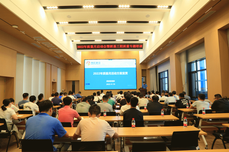 2022年9月19日,為積極響應(yīng)集團公司關(guān)于實施質(zhì)量強市戰(zhàn)略的工作要求,提高公司項目一線員工參與質(zhì)量管理的積極性,切實提升質(zhì)量管理水平,博宏建設(shè)集團開展以“推動質(zhì)量變革創(chuàng)新,促進質(zhì)量強國建設(shè)”為主題的2022年質(zhì)量月啟動會暨樁基工程質(zhì)量專題培訓(xùn)會,項目經(jīng)理、技術(shù)負責人、生產(chǎn)經(jīng)理、質(zhì)檢員等崗位員工參加了本次會議。