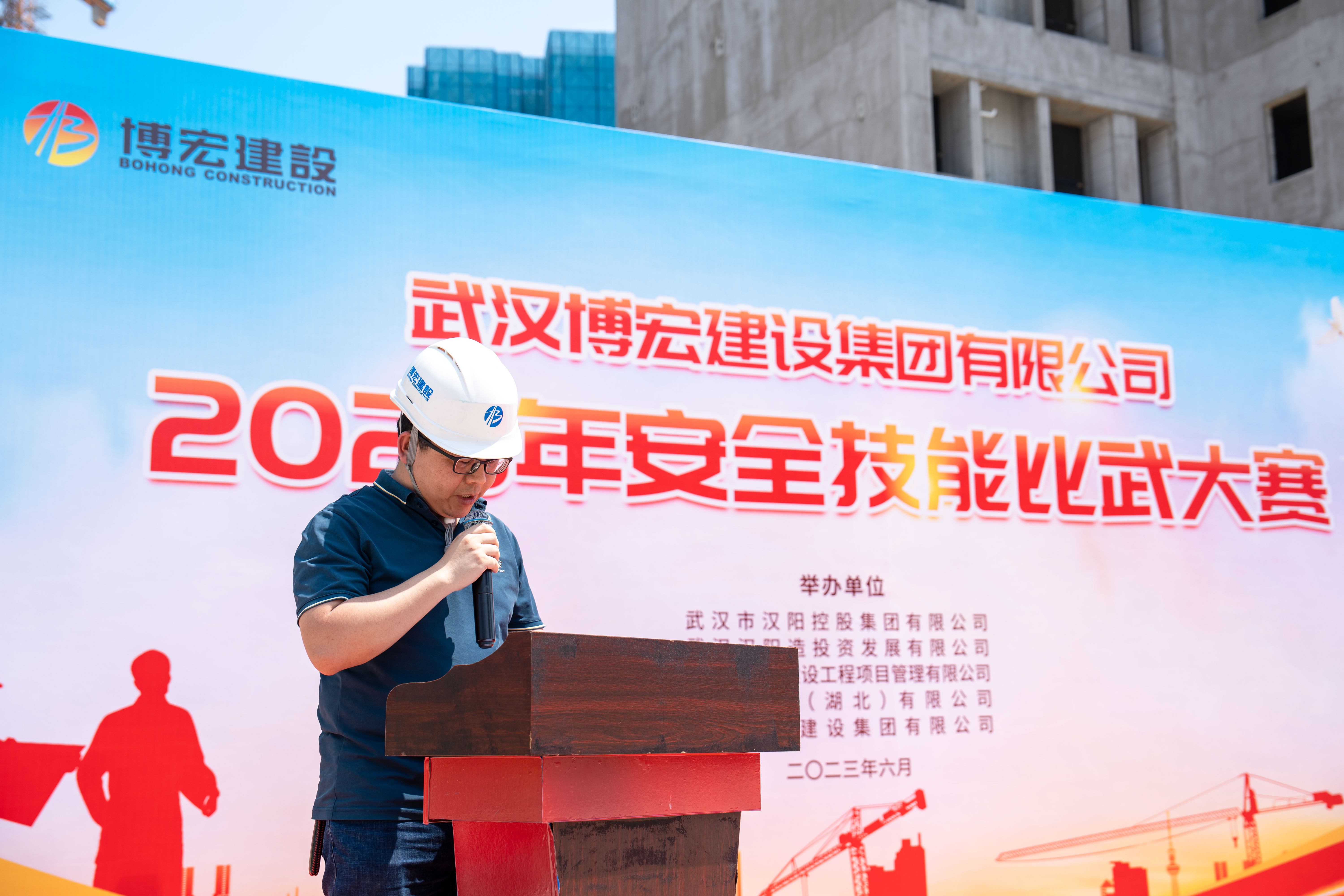 6月9日下午,博宏建設(shè)集團(tuán)2023年安全技能比武大賽在米糧村還建房A地塊順利舉行。武漢市漢陽(yáng)控股集團(tuán)有限公司項(xiàng)目管理部黃圓,武漢漢陽(yáng)造投資發(fā)展有限公司工程部部長(zhǎng)呂飛翔,武漢市建元建設(shè)工程項(xiàng)目管理有限公司房建部副部長(zhǎng)劉志勇,南方咨詢(湖北)有限公司項(xiàng)目總監(jiān)許文真等參建單位相關(guān)領(lǐng)導(dǎo),博宏建設(shè)集團(tuán)總經(jīng)理助理羅平照、總經(jīng)理助理李暉等相關(guān)領(lǐng)導(dǎo)出席了本次啟動(dòng)儀式,各職能部門、8支參賽隊(duì)伍共50余人參加活動(dòng)。