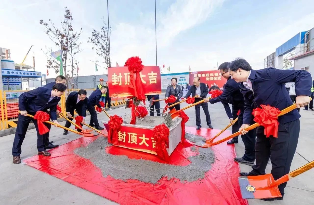 11點(diǎn)13分,嚴(yán)俊、王晟及漢陽市政集團(tuán)、博宏建設(shè)集團(tuán)等相關(guān)單位領(lǐng)導(dǎo)共同為項(xiàng)目澆筑最后一方混凝土,現(xiàn)場禮炮齊鳴,封頂儀式圓滿完成,標(biāo)志著漢陽市政科研中心順利完成一個(gè)里程碑節(jié)點(diǎn),現(xiàn)已進(jìn)入新的建設(shè)階段。